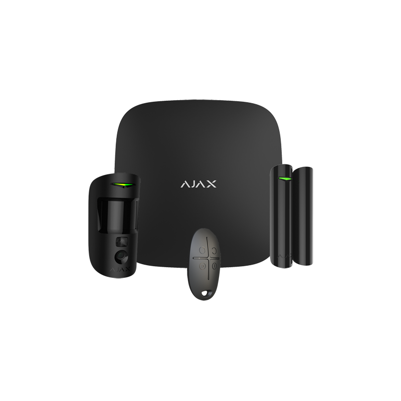 StarterKit Cam Plus è il cuore di un sistema di sicurezza a più livelli. Hub 2 Plus può gestire 200 dispositivi: rilevatori di movimento con foto-verifica di eventi e sirene, rilevatori di incendi e perdite, relè di automazione, persino moduli di integrazione con dispositivi cablati.
