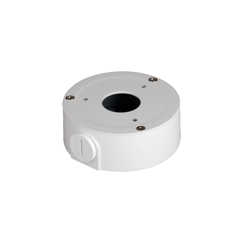 Scatola di giunzione per telecamere dome - Metallico - 34 mm (Al) x 90 mm (diametro base) - Permette il passaggio interno cavi - Controllare nella scheda web le altezze dei fori, per compatibilità con telecamere dome