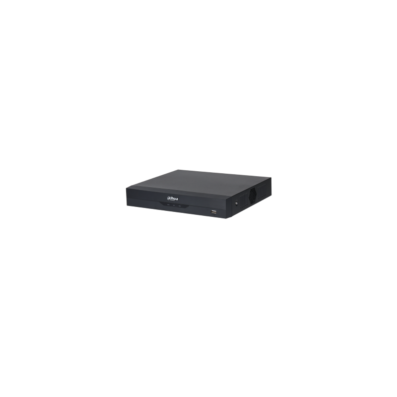 XVR AI WizSense 4 canali HDCVI/CVBS/TVI/AHD o 4+4 canali IP a 8 MP (analog. 7fps encoding), max. banda 64 Mbps, AI coding, H.265+, 2 uscite video (1 VGA + 1 HDMI), 1/4 ingressi RCA/BNC e 1 uscita RCA audio bidirezionale, predisposto per montaggio di 1 disco SATA (fino a 16 TB), 1 porta RS485, 1 porta LAN 100 Mbps, 2 porte USB 2.0, 4 canali analog protezione perimetrale, 1 canale analog face detection/recognition, 4 canali analog SMD Plus, Compact 1U, alimentazione 12 Vdc <7 W senza Hard Disk