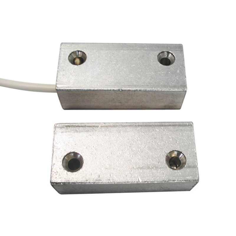 Contatto magnetico di grande portata conforme a EN5O131-2-6 Contatto N.C. con anta chiusa. Studiato per l’installazione su serramenti in materiali ferromagnetici e non. Contenitore in ABS bianco con parte terminale zigrinata ed elastica per un fissaggio stabile nel profilo del serramento. Diametro di fissaggio 20 mm. Collegamento con 4 fili di uscita di lunghezza 30 cm. Disponibile anche in colore marrone e con diverse tipologie di cavo di collegamento a partire da 1 m di lunghezza o contatto di scambio NA/NC o resistenza di bilanciamento (specificare il valore min 200 pz.)